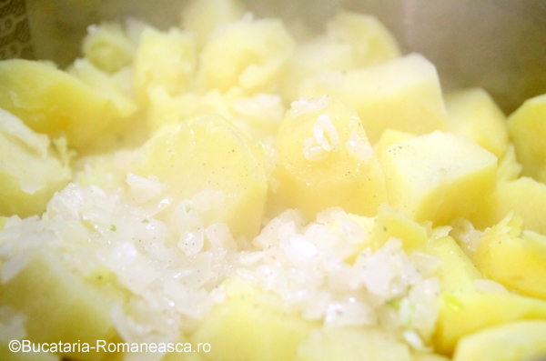Am fiert cartofii in apa cu sare pana s-au inmuiat bine.
