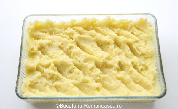 Am intins piureul de cartofi intr-o tava de copt.