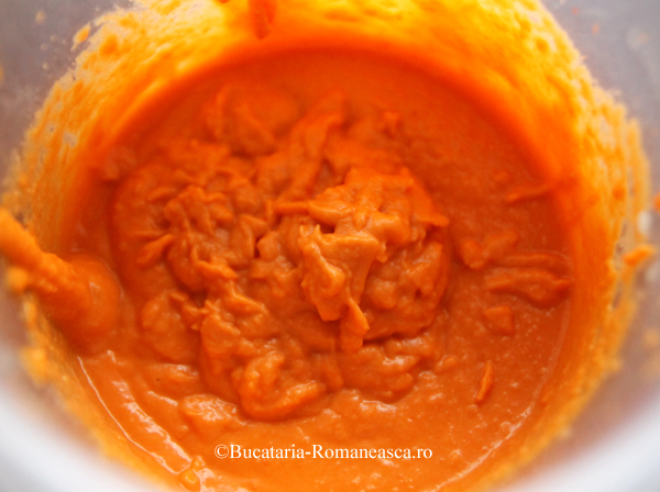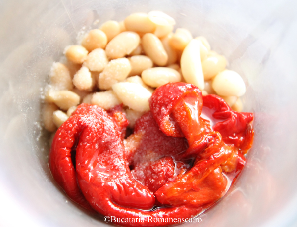 Punem fasolea, ardeii copti, curatati bine de coaja si seminte, in blender sau robot de bucatarie.